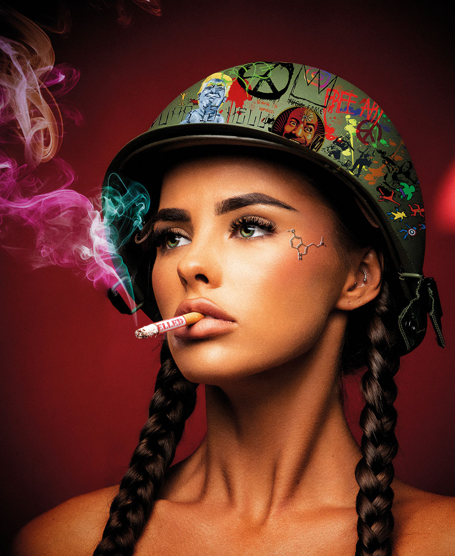 At first, I was fascinated with portraying women in an artistic way that helped break down the social boundaries about sex and nudity. I’ve always been interested in pop culture and the restrictive nature of our society regarding sex and recreational drug use, like psychedelics. It has always astonished me how most people are content to live this cookie-cutter life that’s forced upon us by social norms. So naturally I try to add a shred of relief to this stigma by creating art that can make you laugh or smile or question. Everything I’ve ever created has a purpose, mostly in metaphors or clever visual puns, to try to push my viewer to think deeper into the meaning.
